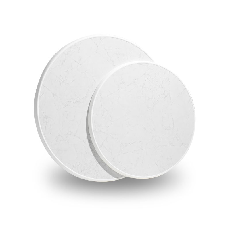 Runda bordsskivor med kantlist. Beroende på storlek passar de på hotell, caféer, restauranger, konferenser och festlokaler. Perfekta som utbytesskivor till gamla bord.