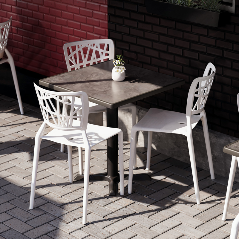 Taggar: Fyrkantigt bord, Bord med kryssfot, Ferrea bord, Uteserveringsbord